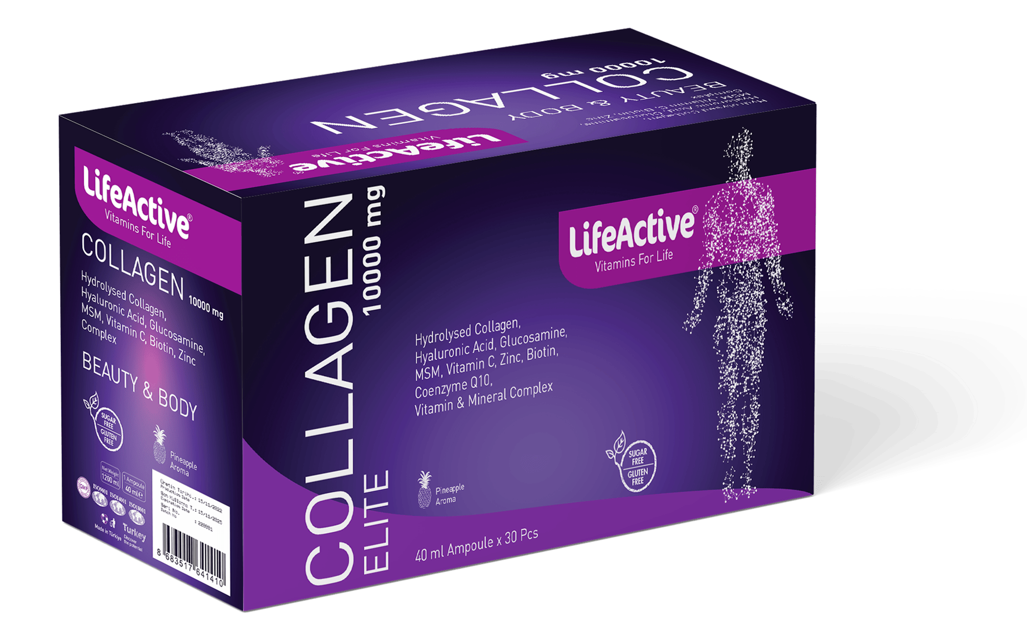 - Faydaları: LifeActive Collagen Elite 10000 mg , eklemleriniz, cildiniz, tırnaklarınız, saçlarınız ve genel sağlığınızı destekler. Cildinizin daha genç görünmesini, eklemlerinizin daha iyi hissetmesini ve bağışıklık sisteminizi güçlendirmesini sağlayabilir.